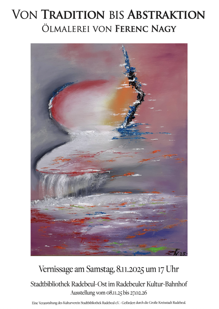 Gezeigt werden aktuell Arbeiten der Künstlerin Natalja Böttger. Zu sehen vom 21.06.2025 bis 30.10.2025 zu den Öffnungszeiten der Bibliothek. Veranstaltung des Kulturvereins der Stadtbibliothek Radebeul e.V.